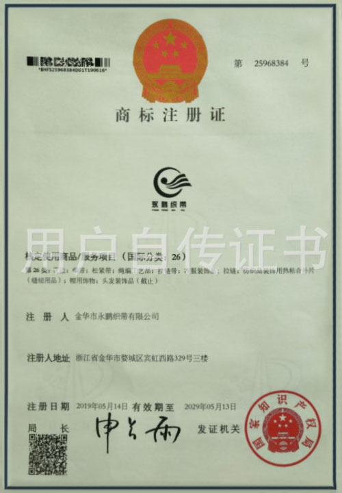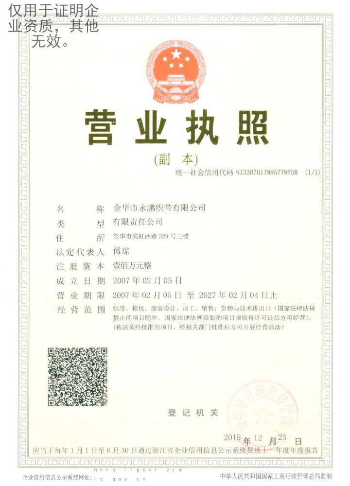 金華市永鵬織帶有限公司 地址:浙江省金華市賓虹西路329號三樓
